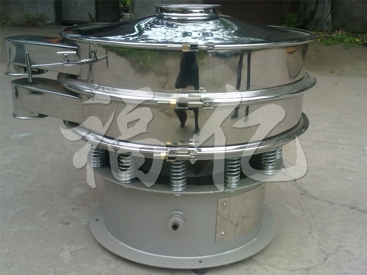 本機由料斗、振蕩室、聯軸器、電機組成。振蕩室內有偏心輪、橡膠軟件、主軸、軸承等組成。可調節的偏心重錘經馬達驅動傳達到主軸中心線,在不平衡的狀態下產生離心力,使物料強度改變,在篩內形成軌道旋渦。重錘調節器的振幅大小可根據不同物料和篩網進行調節。整機結構緊密、體積小、不揚塵、噪音低、質量高、能耗低、移動維修方便。