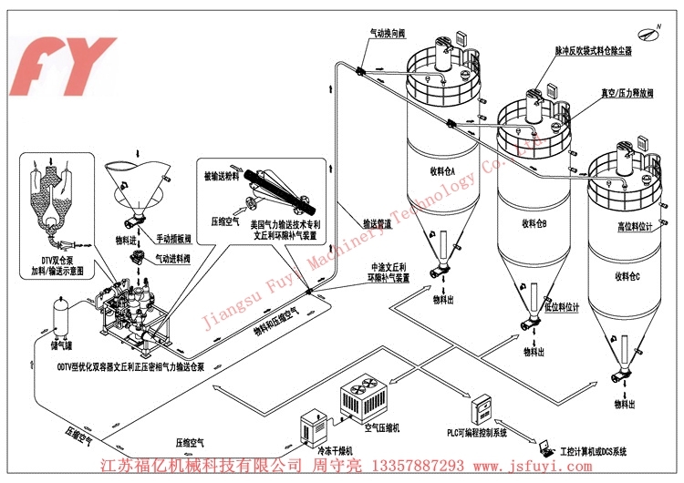 其主要組成部件為發(fā)送罐、增壓器、分離器、卸料閥、排氣除塵器、空壓機組、電控柜等。